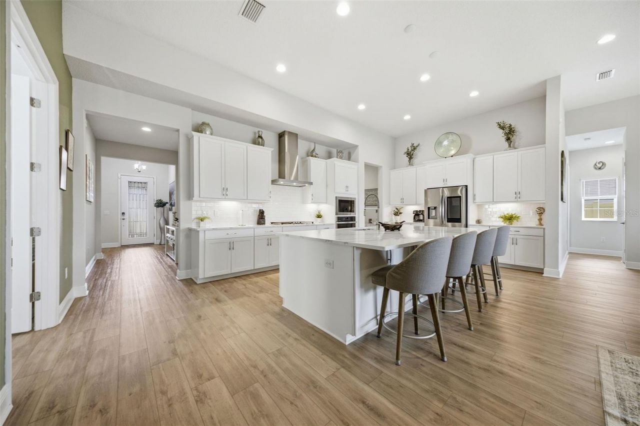 One or more photo(s) has been virtually staged. Perfectly positioned in Parrish's growing corridor, this 2024-built Crosswind Point residence delivers the ideal balance of modern design, space, and everyday convenience. Offering 4 bedrooms, 3 baths, a dedicated office, and a spacious 3-car garage, the home is thoughtfully designed for contemporary living with an open layout and seamless indoor-outdoor flow. From the moment you enter, the home welcomes you with a bright and open feel enhanced by high ceilings and an expansive central living area designed for both daily life and effortless entertaining. The open-concept floor plan allows the living, dining, and kitchen spaces to flow naturally together, creating a warm and functional heart of the home where gatherings come easily. A dedicated office near the front of the home provides the perfect work-from-home space, study area, or flex room depending on your needs. The split-bedroom layout offers privacy and flexibility, with generously sized secondary bedrooms ideal for family or guests. The primary suite is privately tucked away and offers a relaxing retreat with a spacious layout, an en-suite bath with dual vanities, a large walk-in shower, and a walk-in closet. Sliding doors lead to a screened-in rear porch that extends your living space outdoors-perfect for morning coffee, evening relaxation, or weekend entertaining. The fully fenced backyard offers a private, low-maintenance outdoor space-perfect for pets and enjoying the Florida sunshine. Life in Crosswind Point means enjoying a community designed for an active and social lifestyle. Residents have access to brand new amenities such as a resort-style pool, tennis courts, a playground, and a dedicated dog park area, creating spaces for recreation and connection just moments from home. The home places you close to the everyday conveniences that continue to make Parrish one of Southwest Florida's fastest-growing areas. Nearby shopping and dining options include the expanding Creekside Commons corridor along US-301 with Publix, Starbucks, and local dining favorites, while Ellenton Premium Outlets offers additional retail and restaurant options just a short drive away. Convenient access to I-75 makes commuting easy to Lakewood Ranch, Sarasota, St. Petersburg, and Tampa. Nearly new construction, spacious design, and a location make this the kind of home buyers wait for.